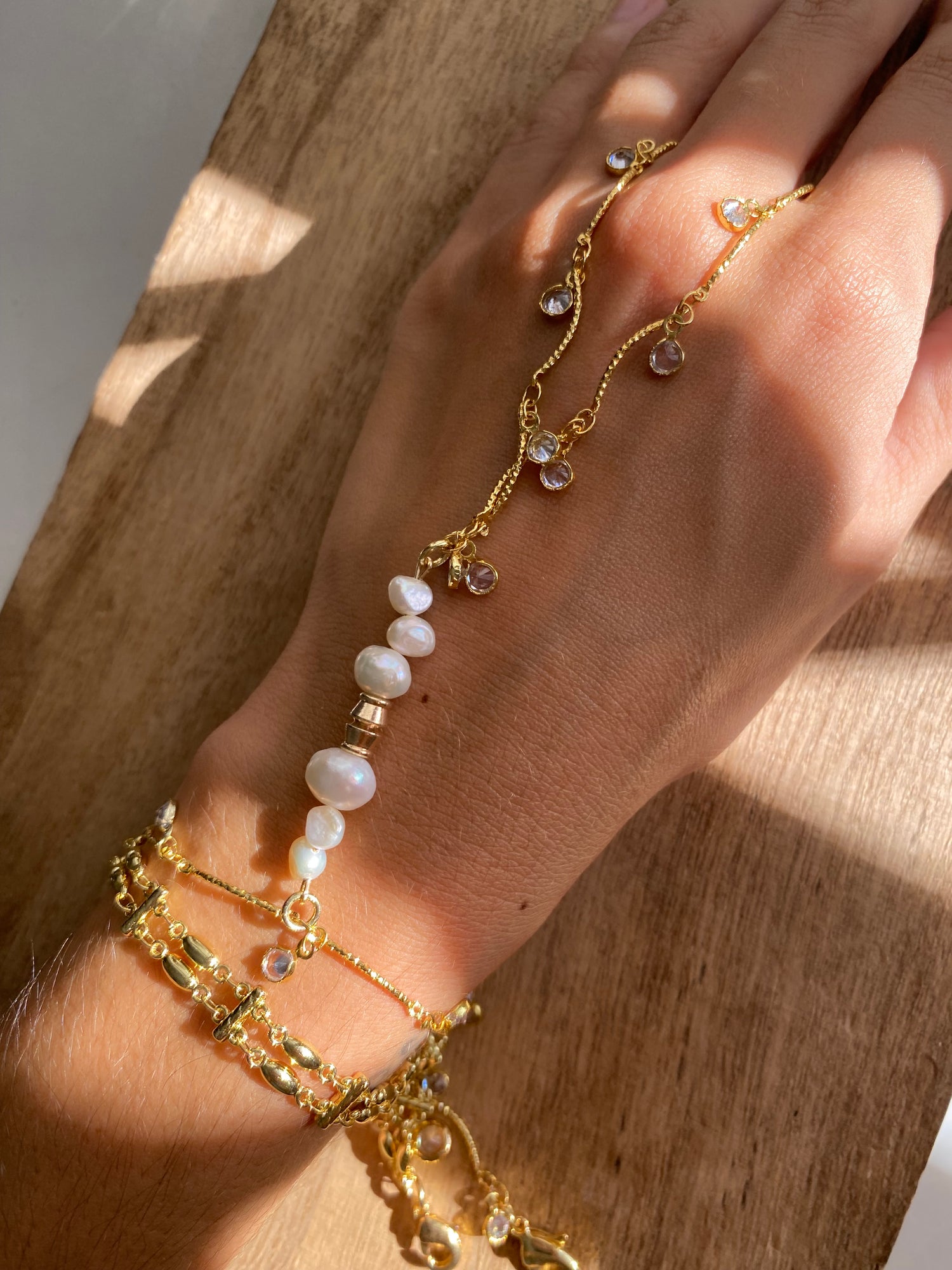Cuando los destellos de cadenas en 18k gold filled y gemas llenas de energía se unen, nace la intención de nuestro estilo para sintonizar de forma sostenible y original, tu look boho chic.